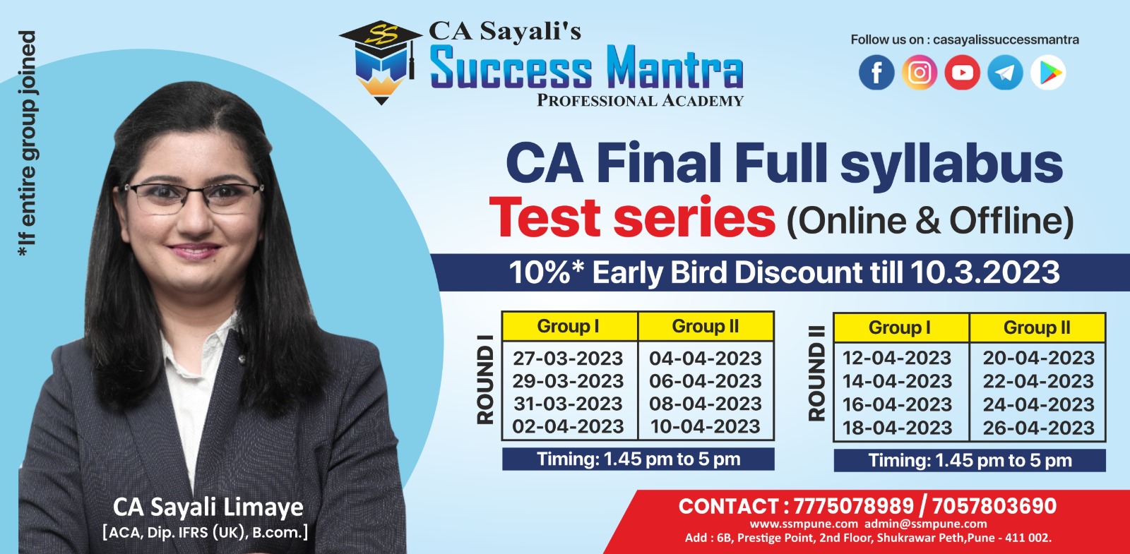 I strongly recommended to join sayali Mam's success mantra for your great success.