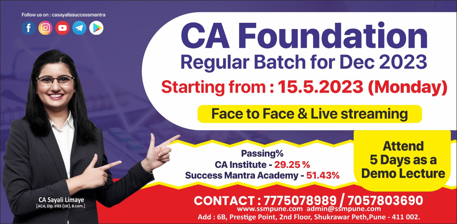 Thanks Sayali Mam's success Mantra to helped me to cleared my CA final both group in first attempt.